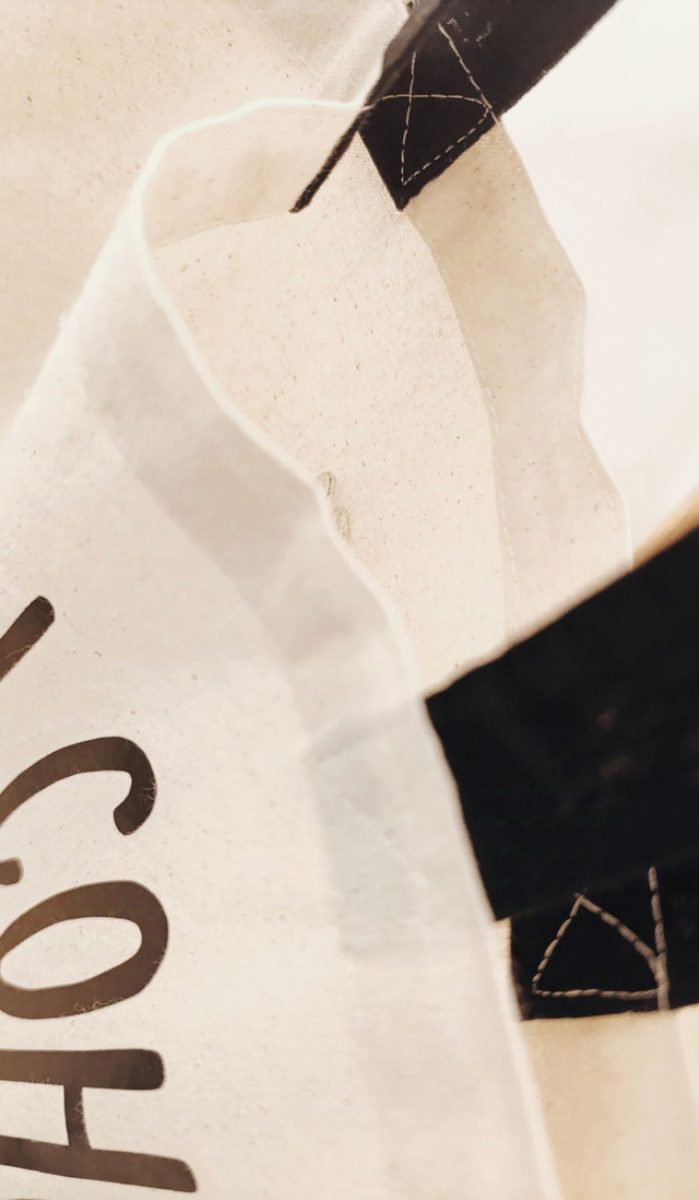 Black cotton ribbon handle 65 cm long and 2.5 cm wide.